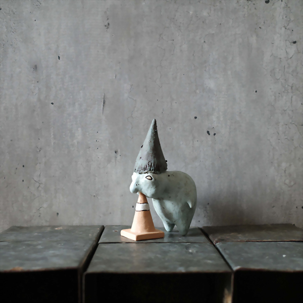 藍色小矮人喜歡靠著三角錐休息。